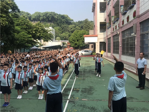 9月1日上午,龍頭環(huán)學校召開了“加強文化引領(lǐng),打造新優(yōu)質(zhì)學?!睘橹黝}的開學典禮。典禮上,莊嚴的升旗禮儀式后,吳發(fā)志校長代表全體師生,歡迎一年級小朋友,祝賀他們正式成為一名小學生。吳校長還對暑期創(chuàng)建文明城市的工作進行匯報,美德是立身之本,文明是城市之魂,要求全體師生尊紀守法,做一個文明守禮的好公民,讓文明之花開遍龍頭環(huán)校園。
