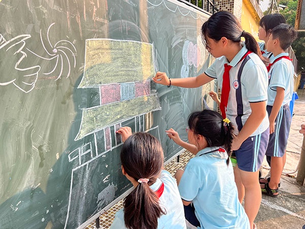 為使學(xué)生了解新中國(guó)建立的艱辛歷程和祖國(guó)建設(shè)取得的偉大成就,理解中國(guó)共產(chǎn)黨領(lǐng)導(dǎo)中國(guó)人民走社會(huì)主義道路是歷史的必然選擇,增強(qiáng)對(duì)偉大祖國(guó)、黨和人民的熱愛,進(jìn)一步把愛國(guó)情感化為具體行動(dòng),立志為實(shí)現(xiàn)中華民族偉大復(fù)興作出貢獻(xiàn),在祖國(guó)母親生日到來(lái)之際,濠涌小學(xué)的黨員教師帶領(lǐng)家長(zhǎng)義工和學(xué)生一起布置起班級(jí)的涂鴉墻。小小巧手贊祖國(guó),大大畫筆繪山河,涂鴉墻在大家的共同努力下充滿了節(jié)日喜慶的色彩,為獻(xiàn)禮祖國(guó)涂上了濃墨重彩的一筆。