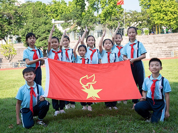 迎著朝陽的晨曦,濠涌小學(xué)升旗臺前隊旗飄揚,隊員們響起了嘹亮的隊歌,以熱烈的掌聲歡迎少先隊員代表王嘉琪上臺講話。王嘉琪同學(xué)與大家一起回顧了少先隊的發(fā)展歷史,號召大家作為少先隊員要處處以身作則,不光在學(xué)習(xí)上要勇于爭先,勇攀高峰,在日常行為習(xí)慣上也要起到表率作用,積極響應(yīng)學(xué)校本學(xué)期“垃圾不落地”的德育主題,把校園建設(shè)得更加干凈、整潔。接著,濠涌小學(xué)少工委主任、校長辜鴻雁向少先隊員們寄語,希望少先隊員們在學(xué)習(xí)中增長知識,在實踐中展現(xiàn)風(fēng)采,在活動中放飛理想,讓胸前的紅領(lǐng)巾更加鮮艷。