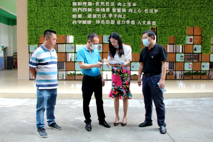 黎委員初次到云漢小學(xué),首先視察了校園環(huán)境。寧校長詳細(xì)向領(lǐng)導(dǎo)匯報(bào)了學(xué)生開學(xué)情況以及安全防疫措施。隨后寧校長為黎委員介紹了學(xué)校圍繞“向上精神”為核心的校園文化建設(shè)情況,黎委員也詳細(xì)了解了學(xué)校擴(kuò)建工程的規(guī)劃和進(jìn)展情況。黎委員肯定了學(xué)校的后續(xù)發(fā)展?jié)摿?,認(rèn)為在新校舍投入使用之后,云漢、星寶片區(qū)的孩子將可在家門口享受優(yōu)質(zhì)教育,能有效地促進(jìn)全鎮(zhèn)小學(xué)義務(wù)教育優(yōu)質(zhì)均衡發(fā)展。