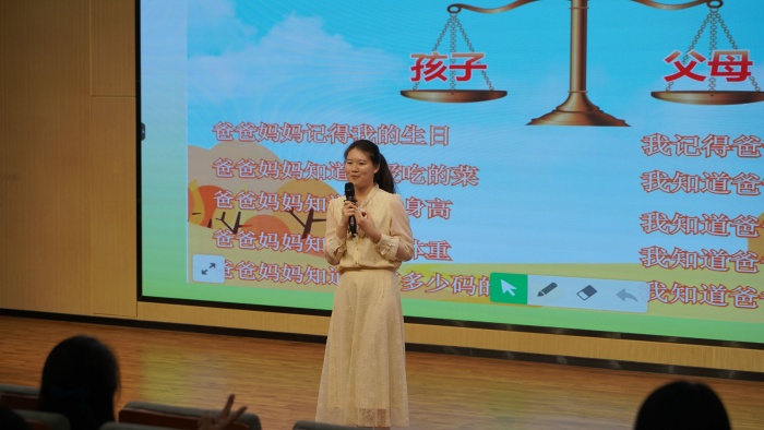 中山市教育教學(xué)研究院德育教研員朱敏嫣老師以《主題班會(huì)課怎么上》為題,就現(xiàn)時(shí)主題班會(huì)課的教學(xué)現(xiàn)狀提出了相關(guān)建議,她圍繞主題班會(huì)課目標(biāo)中的“知、信、行”三個(gè)字,以沙溪鎮(zhèn)康樂小學(xué)梁鈺婷老師的一節(jié)班會(huì)課《孝敬父母,學(xué)會(huì)感恩》為例,強(qiáng)調(diào)如何優(yōu)化主題班會(huì)的授課內(nèi)容與方式,使學(xué)生更好地吸收社會(huì)主義核心價(jià)值觀的營(yíng)養(yǎng)。朱老師娓娓道來,使與會(huì)人員更清晰、更準(zhǔn)確地掌握社會(huì)主義核心價(jià)值觀主題班會(huì)課的教學(xué)意義、規(guī)范、策略。