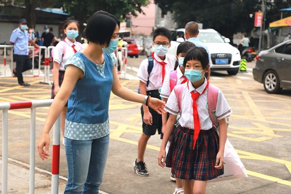 早上七點(diǎn),校領(lǐng)導(dǎo)和值日老師們早已在校園的各個(gè)崗位嚴(yán)陣以待,等候同學(xué)們的到來,雖然下著蒙蒙的細(xì)雨,依然阻擋不了師生們復(fù)學(xué)的熱情。同學(xué)們都戴著口罩自覺間隔1米以上,排隊(duì)檢測體溫,通過人臉識別進(jìn)入校園。家長們?yōu)榱诵iT口交通順暢,也自覺配合學(xué)校的各項(xiàng)規(guī)定,一切秩序井然。