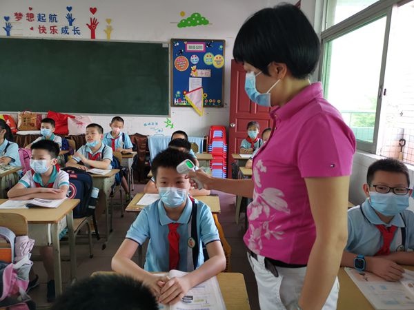 接下來,孩子們上了期待已久的各科課程,十分愉快。下課后,廣播里傳來溫馨的提示語,孩子們有秩序地上廁所,前后兩堂課的老師做到無縫對接。上午11點(diǎn)左右,學(xué)校順利通過市紀(jì)委復(fù)學(xué)督察組的檢查,完善的復(fù)學(xué)準(zhǔn)備工作得到領(lǐng)導(dǎo)的肯定。中午,全校同學(xué)錯(cuò)峰用餐,在老師的引導(dǎo)下,排隊(duì)間隔1米以上,固定位置,不交談,吃完有秩序地離開。每班吃完,食堂工作人員立即對桌椅進(jìn)行消毒。整個(gè)過程安排保障了同學(xué)們的安全萬無一失。午餐以后,孩子們在老師的組織下回教室午休,在集體的大家庭里睡得很香。