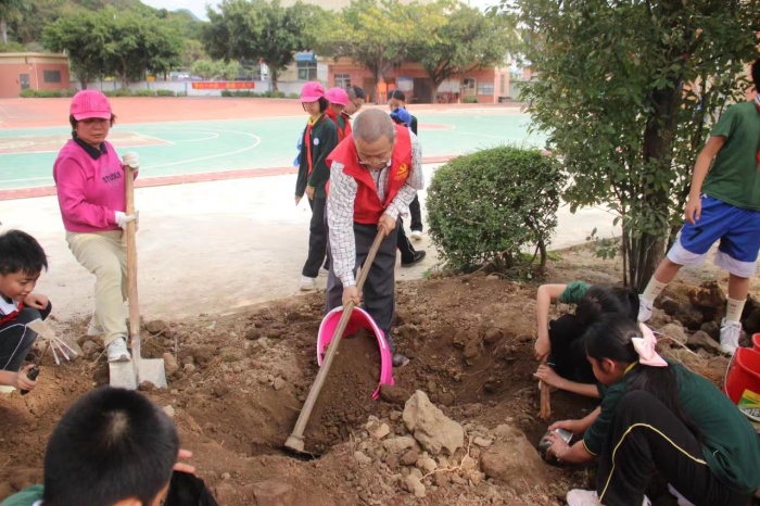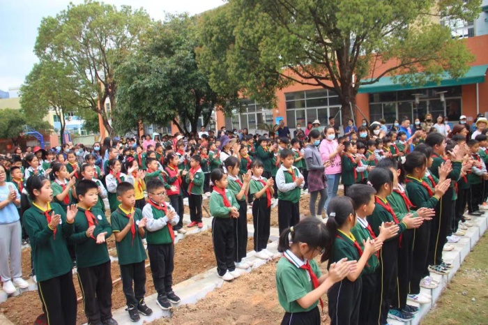 儀式上,學生們集體誦讀了《二十四節(jié)氣歌》,鏗鏘有力的朗讀聲響徹校園。隨后,譚校長宣布開耕節(jié)開始。各班班主任及家長代表帶領學生開展植樹培土儀式和勞動教育種植體驗課程,讓整個“開耕節(jié)”有了“肩擔耕犁啟春耕”的儀式感。農耕文化是中國傳統(tǒng)文化的重要組成部分,而學校舉辦“開耕節(jié)”,就是要讓學生們能深刻領悟“耕讀傳家”的內涵,體味農民朋友的艱辛不易。