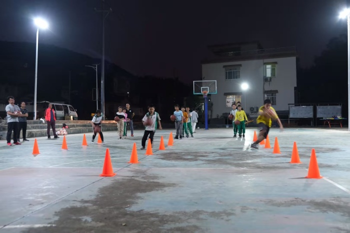 下午5:10,大部隊到達封開縣裕豐村,受到神灣鎮(zhèn)扶貧辦駐村書記李靖宇同志的熱情招待,他向老師們介紹了村里的孩子基本情況,孩子們在村里的輔導點,是他們晚上放學回來的主要學習地方,旁邊有個籃球場,孩子們的體育鍛煉時間都比較少,接受專業(yè)的體育技能培訓學習更不用說了。