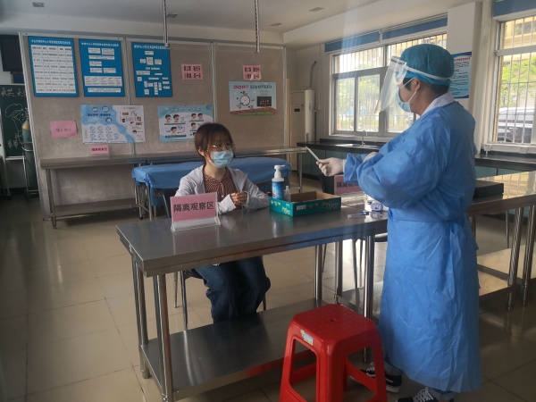 下午,實(shí)地演練開(kāi)始了,參加演練的全體人員分崗位、分角色進(jìn)行了模擬演練。首先是做好學(xué)生入校前準(zhǔn)備工作,緊接著全體老師模擬四五六年級(jí)學(xué)生上課、午餐、午休、放學(xué)及課室消毒清潔等情景。所有人員全程佩戴一次性口罩,等待和行走過(guò)程中每人間隔1米以上。若有學(xué)生出現(xiàn)嘔吐或發(fā)熱情況,立即啟動(dòng)應(yīng)急預(yù)案,對(duì)學(xué)生進(jìn)行隔離診斷登記、分級(jí)上報(bào)、通知家長(zhǎng)、送醫(yī)治療,有序安置其他學(xué)生到指定場(chǎng)室,并對(duì)課室、飯?zhí)?、出入口隔離室進(jìn)行消毒等。面對(duì)出現(xiàn)的異常狀況,老師對(duì)學(xué)生進(jìn)行心理疏導(dǎo),避免學(xué)生出現(xiàn)心理恐慌。