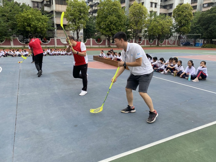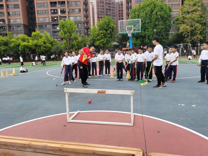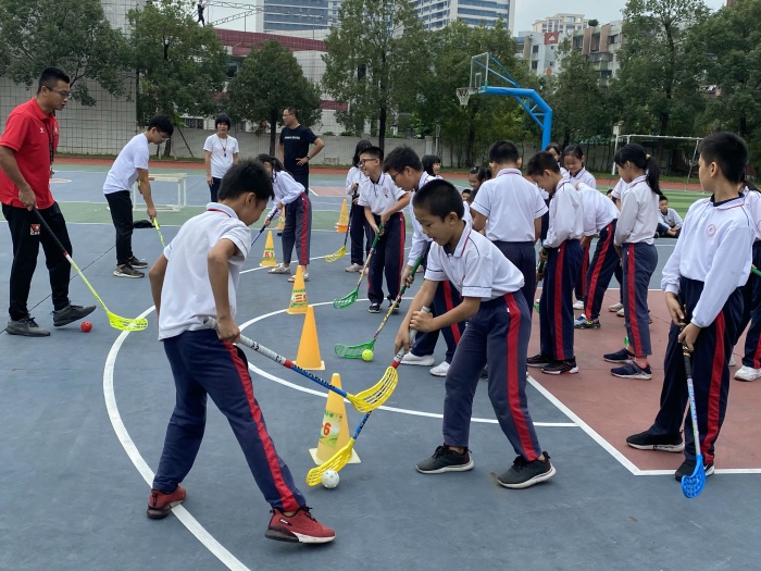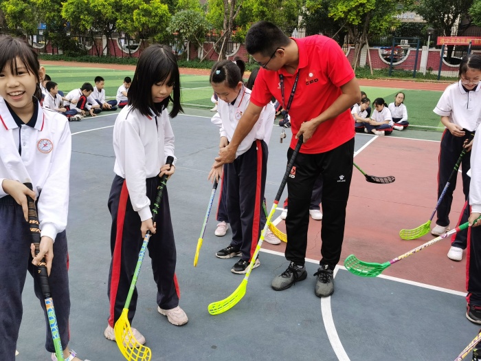 石岐第一城小學(xué)以“旱地冰球”為特色項(xiàng)目,在全校師生中進(jìn)行推廣。瞧!同學(xué)們第一次拿起球桿,既興奮又好奇,迫不及待地?fù)]舞了幾下。“大家請(qǐng)看我的示范。”教練一發(fā)話,他們馬上目不轉(zhuǎn)睛地看著教練的演示。經(jīng)過(guò)幾番練習(xí),孩子們漸漸掌握了握球桿的正確姿勢(shì)。