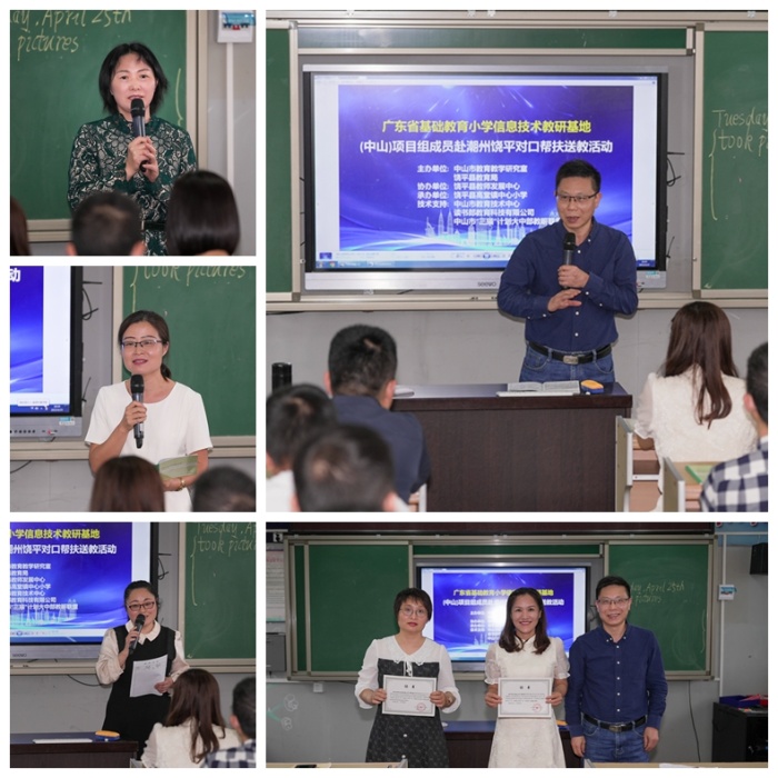學(xué)有所思,行之有向?;顒?dòng)的最后,老師們齊聚一堂,就本次的對(duì)口幫扶送教活動(dòng)中的學(xué)習(xí)收獲進(jìn)行了交流分享,中山市南區(qū)良都小學(xué)鄧定波主任目前在饒平縣高堂鎮(zhèn)中心小學(xué)掛職副校長(zhǎng),他表示,非常感謝廣東省基礎(chǔ)教育小學(xué)信息技術(shù)教研基地項(xiàng)目(中山)在區(qū)域聯(lián)動(dòng)、教學(xué)、教研等方面的示范引領(lǐng)作用。陳明宏老師也對(duì)本次活動(dòng)進(jìn)行了總結(jié),陳老師指出此次“對(duì)口幫扶送教”活動(dòng),為老師們提供了互相交流展示的平臺(tái),促進(jìn)了教師間的教學(xué)互助,共享了優(yōu)質(zhì)的教育資源。