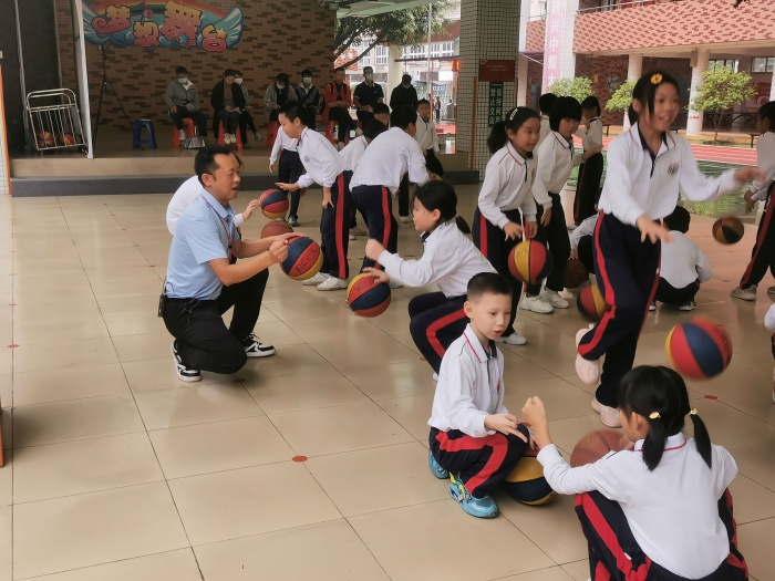 體育科組的潘杰老師執(zhí)教的《籃球運(yùn)球》體育課,由于下雨,上課地點(diǎn)從籃球場改在了達(dá)人堂,場地縮小了一半,但這絲毫不影響孩子們認(rèn)真積極的學(xué)習(xí)態(tài)度,從練習(xí)動(dòng)作到完成動(dòng)作,教學(xué)各個(gè)環(huán)節(jié)的設(shè)計(jì)充分體現(xiàn)了“學(xué)、練、賽”的體育新課標(biāo),讓課堂氛圍更加活躍。潘老師精準(zhǔn)的動(dòng)作示范讓學(xué)生很快掌握動(dòng)作要領(lǐng)。最后學(xué)生在不斷地練習(xí)中收獲了運(yùn)動(dòng)的快樂。