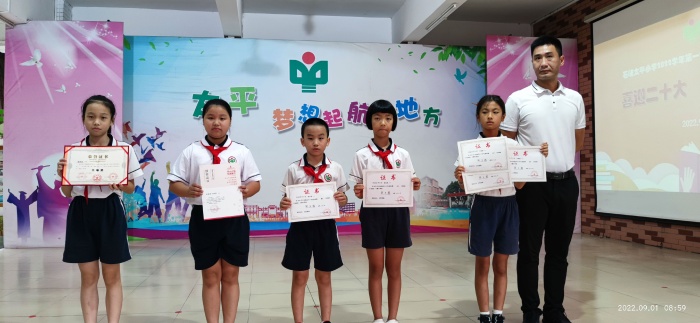 最后由陳文卿副校長對同學(xué)們暑假里幫父母做力所能及的家務(wù),積極參加各項文體活動等方面做了肯定。頒發(fā)了上學(xué)期散學(xué)禮獎狀,對上學(xué)期表現(xiàn)優(yōu)異的學(xué)生進行表彰,號召其他同學(xué)以他們?yōu)榘駱?,遇見更好的自己?/p>