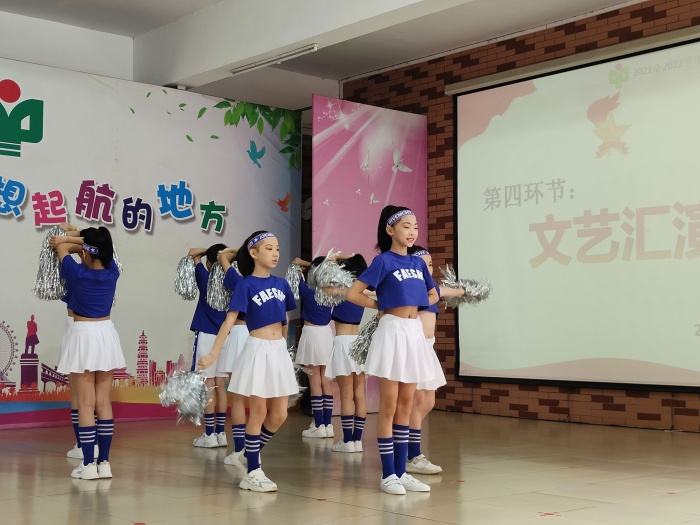 頒獎(jiǎng)活動(dòng)后,慶六一文藝匯演在歡快的音樂聲中拉開了序幕。 孩子們身著節(jié)日盛裝,載歌載舞,好戲連連。節(jié)目的類型多樣,有合唱、啦啦操、戲劇、詩歌朗誦、跆拳等別出心裁的表演形式。