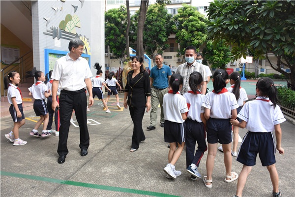 段主任邊走邊看,邊看邊問,整潔的校園環(huán)境、濃郁的校園文化、蓬勃的師生面貌、井然的教學秩序,都讓他連連稱贊。段主任充分肯定了學校在不斷優(yōu)化辦學條件,致力學校內(nèi)涵發(fā)展方面所做出的不懈努力。他強調(diào),學校要把黨的政治建設(shè)放在首位,充分發(fā)揮支部堡壘作用,以黨建引領(lǐng)推動學校工作,不斷提高學校教育教學質(zhì)量,助推石岐教育蓬勃發(fā)展。他表示,區(qū)政府也將繼續(xù)全力支持教育事業(yè)發(fā)展,切實幫助學校解決教育教學中的困難,讓廣大教師安心從教,舒心從教。教師工作是塑造靈魂、塑造生命、塑造人的工作,發(fā)展教育事業(yè),廣大教師承擔著讓每個孩子健康成長、辦好人民滿意教育的重任。他希望教師們牢記責任使命,發(fā)揚樂于奉獻的精神,愛崗敬業(yè),立德樹人,深耕教育,讓家長放心,讓社會滿意。第37個教師節(jié)即將來臨,段主任還向辛勤耕耘的老師們致以節(jié)日的祝福和誠摯的問候。