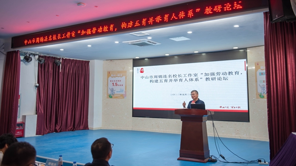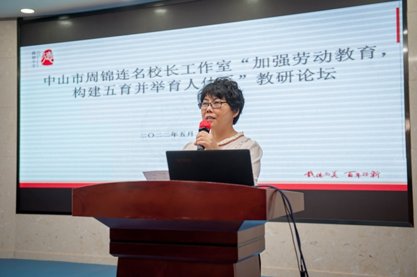 隨后,全體成員來(lái)到階梯室開展論壇研討活動(dòng),由中山市名校長(zhǎng)工作室主持人周錦連校長(zhǎng)主持。周校長(zhǎng)簡(jiǎn)單地介紹了《中共中央國(guó)務(wù)院關(guān)于全面加強(qiáng)新時(shí)代大中小學(xué)勞動(dòng)教育的意見》《義務(wù)教育勞動(dòng)課程標(biāo)準(zhǔn)(2022年版)》等文件,指出當(dāng)今勞動(dòng)教育的重要意義,并呼吁工作室成員們相互交流、學(xué)習(xí)和借鑒優(yōu)秀經(jīng)驗(yàn),共同促進(jìn)學(xué)校勞動(dòng)教育的發(fā)展。隨后,工作室的四位校長(zhǎng)分別作了專題報(bào)告。