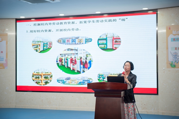 中山市大涌鎮(zhèn)旗南小學(xué)梁鉅全校長(zhǎng)則作了《因地制宜,崇尚勞動(dòng),做幸福追夢(mèng)人》的專題報(bào)告。他從學(xué)校傳承學(xué)生良好習(xí)慣,體驗(yàn)勞動(dòng);掌握種植技能,學(xué)會(huì)勞動(dòng);豐富勞動(dòng)陣地,熱愛勞動(dòng);全面宣傳展示,享受勞動(dòng)等方面分享了學(xué)校在勞動(dòng)教育的做法和經(jīng)驗(yàn)。此外,他還提出了要進(jìn)一步加強(qiáng)勞動(dòng)教育與德、智、體、美各育有機(jī)的整合,進(jìn)一步研發(fā)校本勞動(dòng)教材等后續(xù)發(fā)展方向。