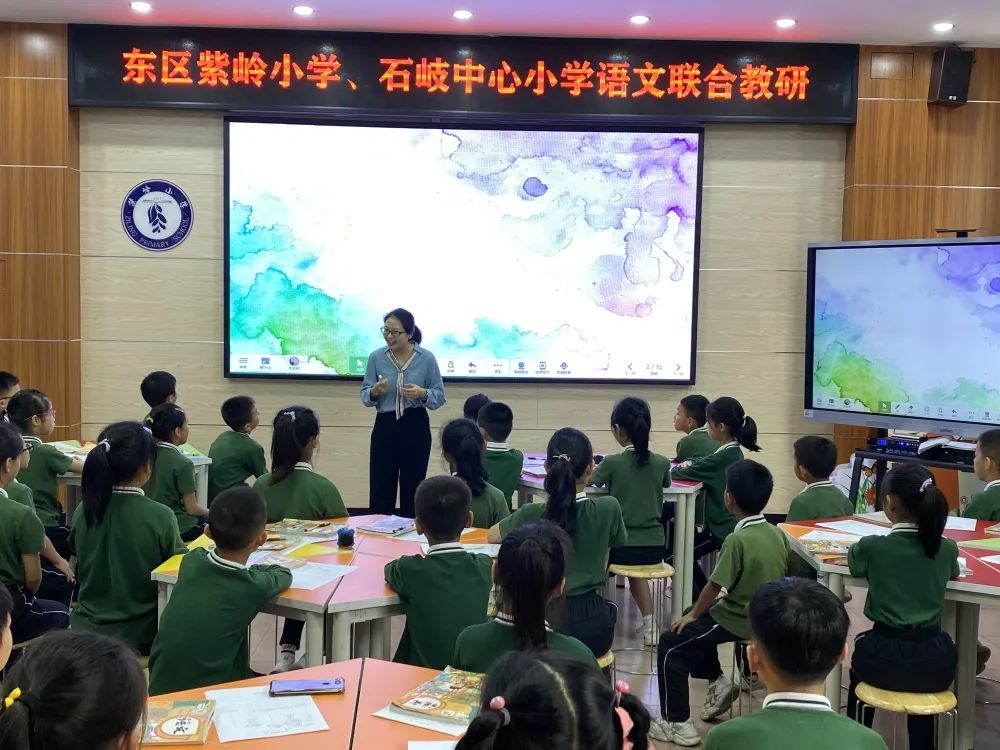 課后,紫嶺小學(xué)晏利紅副校長(zhǎng)、三年級(jí)的語文老師和石岐中心小學(xué)的閱讀寫作研究組成員圍繞“寫作單元教學(xué)中語文要素的系統(tǒng)推進(jìn)、閱讀課如何有效為單元寫作鋪路、提高閱讀指導(dǎo)的效能、閱讀教學(xué)各環(huán)節(jié)分目標(biāo)的落實(shí)”等問題展開了熱烈討論,授課者與聽課者都受益匪淺。
