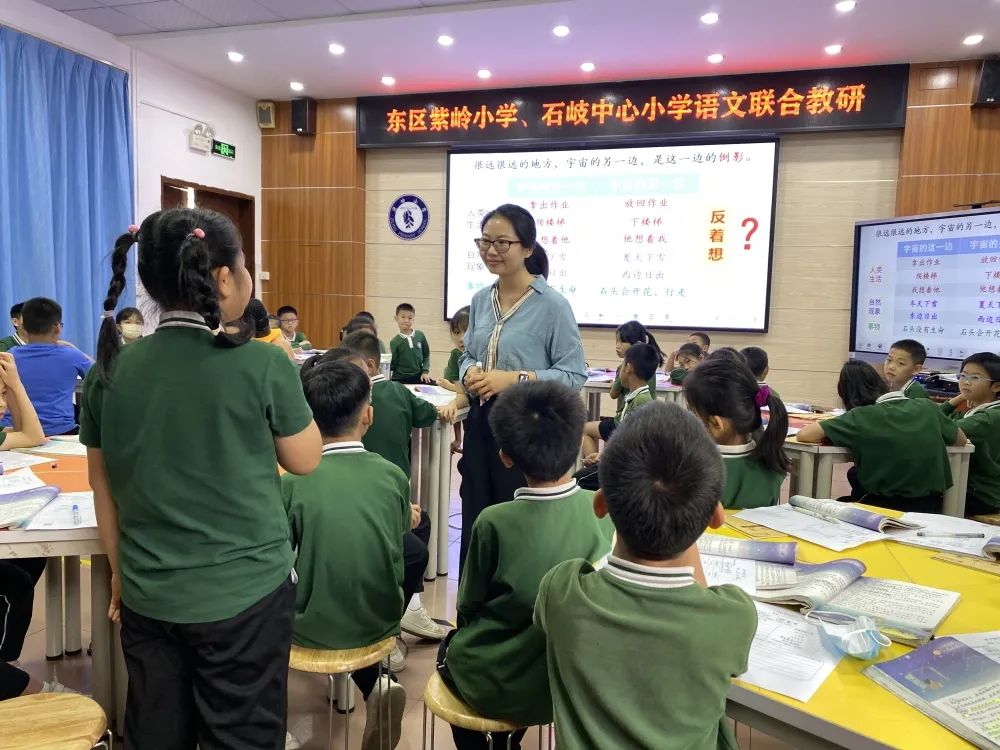 首先,朱曉玲老師和紫嶺小學(xué)三(1)班的同學(xué)們一起上了研討課——《宇宙的另一邊》。朱老師從文本出發(fā),用親切的、啟發(fā)性的語言,引領(lǐng)同學(xué)們走進(jìn)想象的世界,體會(huì)了想象的神奇,還帶領(lǐng)同學(xué)們發(fā)揮想象創(chuàng)造了一個(gè)又一個(gè)神奇的世界,感受了想象的魅力。