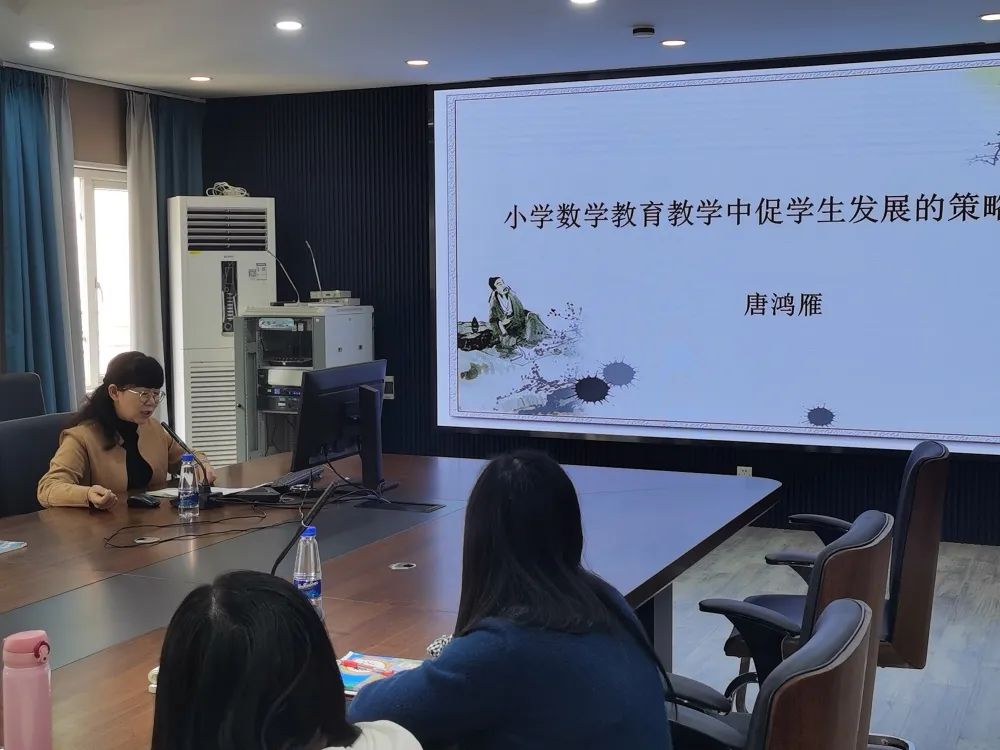 撰稿:湯小麗 審稿:劉子義 二審:黃建喜 三審:周錦連 發(fā)布:區(qū)泳秋 為全面貫徹黨的教育方針,落實(shí)立德樹(shù)人根本任務(wù),著眼高質(zhì)量教育體系建設(shè),2022年4月20日下午,中山市石岐中心小學(xué)數(shù)學(xué)科組就如何在課堂教學(xué)提質(zhì)增效,促進(jìn)學(xué)生全面優(yōu)質(zhì)發(fā)展開(kāi)展深度教研。教研活動(dòng)由數(shù)學(xué)科組長(zhǎng)陳鋼老師主持,教科室唐鴻雁副主任做《小學(xué)教育教學(xué)中促進(jìn)學(xué)生發(fā)展的策略》的專(zhuān)題講座。