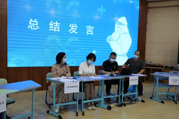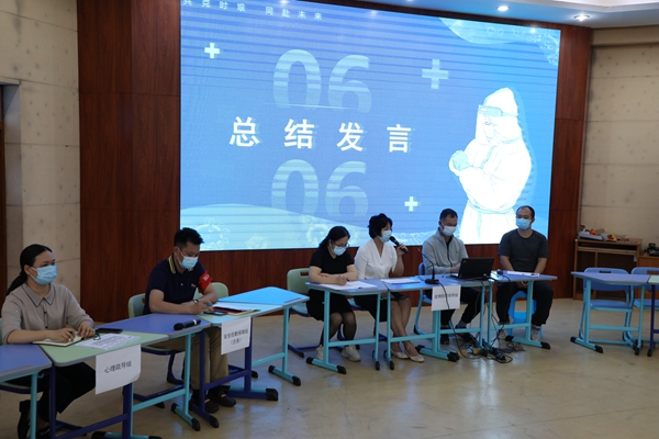 總結(jié)階段,學(xué)校衛(wèi)生健康副校長(zhǎng)肖小華充分肯定了本次演練的效果。她認(rèn)為本次演練能按照相關(guān)文件要求,涵蓋特殊情境下應(yīng)急處置的關(guān)鍵環(huán)節(jié),也能按照預(yù)案迅速啟動(dòng)校內(nèi)應(yīng)急處置機(jī)制,有詳細(xì)的任務(wù)和分工,還關(guān)注到了流調(diào)、轉(zhuǎn)運(yùn)、在線教學(xué)開展、后勤保障、心理疏導(dǎo)與家校溝通等方方面面的重點(diǎn)環(huán)節(jié)。學(xué)校在組織、實(shí)施疫情防控應(yīng)急處置桌面演練過程中表現(xiàn)出了很強(qiáng)的執(zhí)行力、科學(xué)性、專業(yè)性和可操作性。希望在接下來的工作中,進(jìn)一步加強(qiáng)部門間的聯(lián)動(dòng),優(yōu)化各部門處置流程;細(xì)化工作職責(zé),做到“責(zé)任到崗、任務(wù)到人”;建議學(xué)校要思考極端情境下,非寄宿制學(xué)校的后勤保障方面面臨的嚴(yán)峻挑戰(zhàn)。