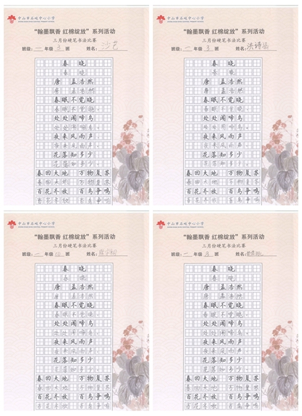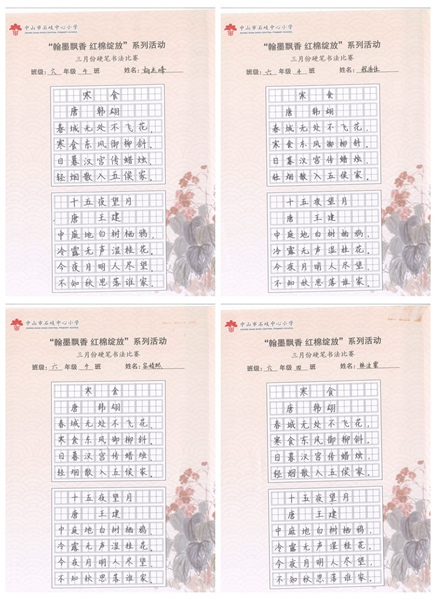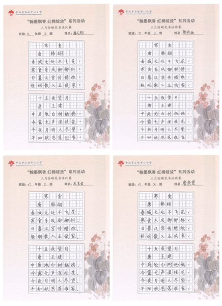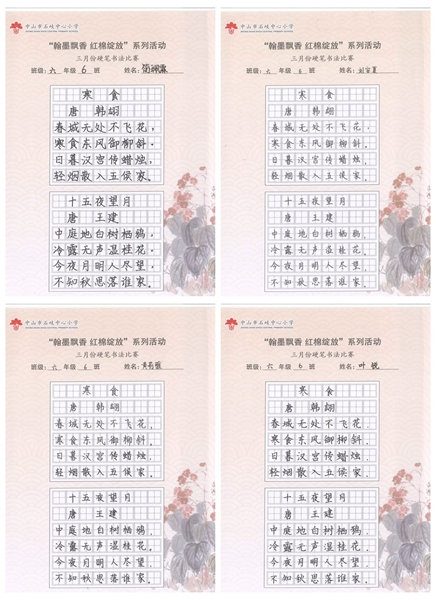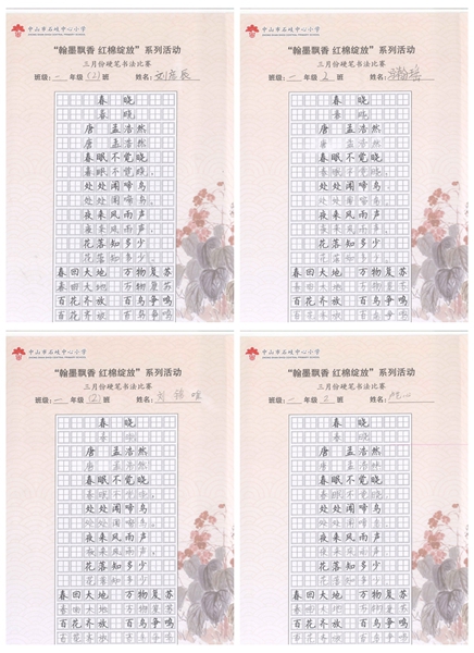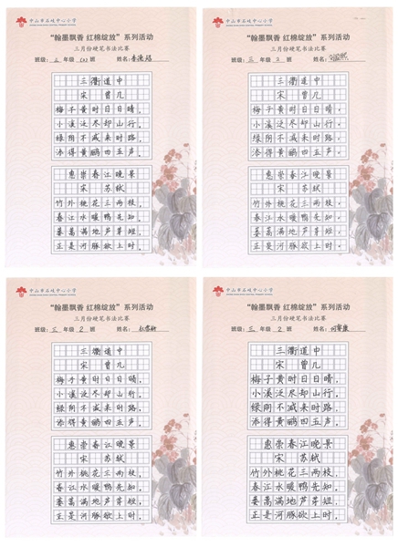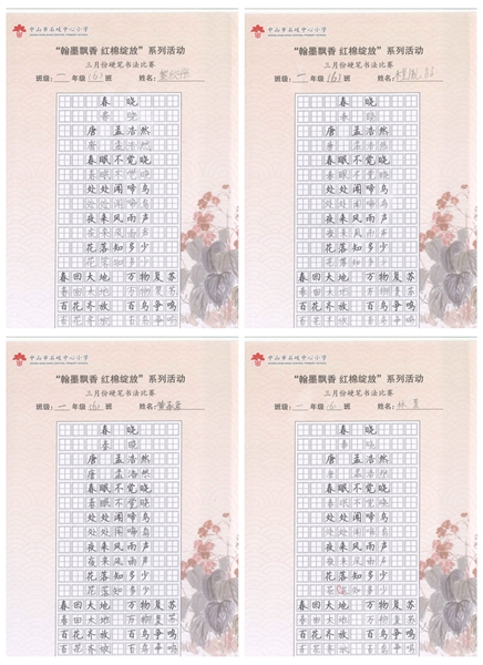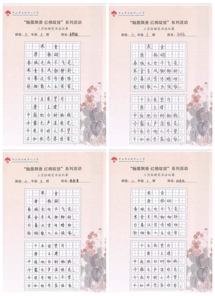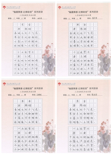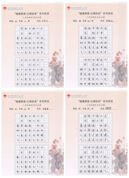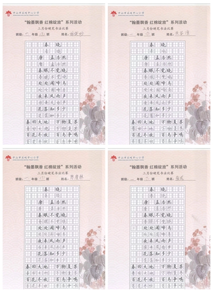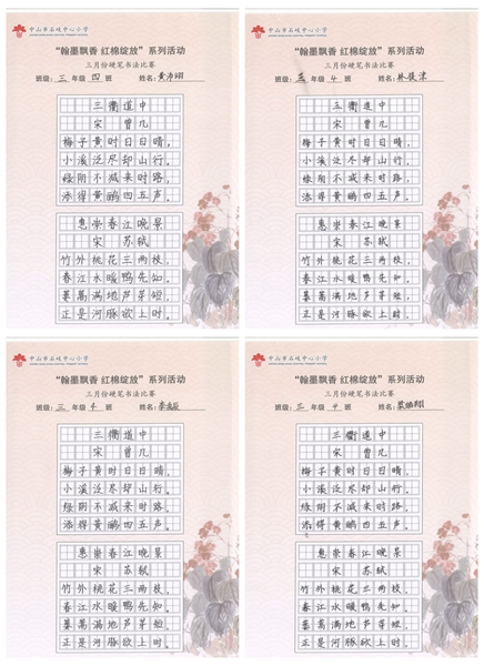 為傳承和弘揚(yáng)中華優(yōu)秀傳統(tǒng)文化,激發(fā)學(xué)生學(xué)習(xí)書(shū)法的熱情,引導(dǎo)學(xué)生和家長(zhǎng)高度重視書(shū)寫(xiě)教育,提高書(shū)寫(xiě)質(zhì)量,石岐中心小學(xué)書(shū)法科組舉辦了全校學(xué)生現(xiàn)場(chǎng)硬筆書(shū)法比賽。
