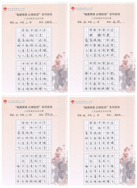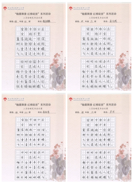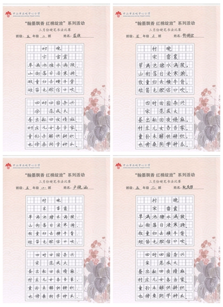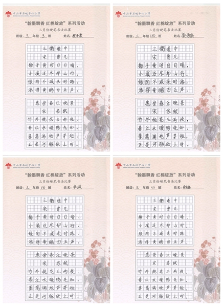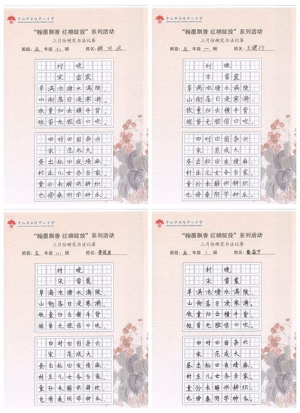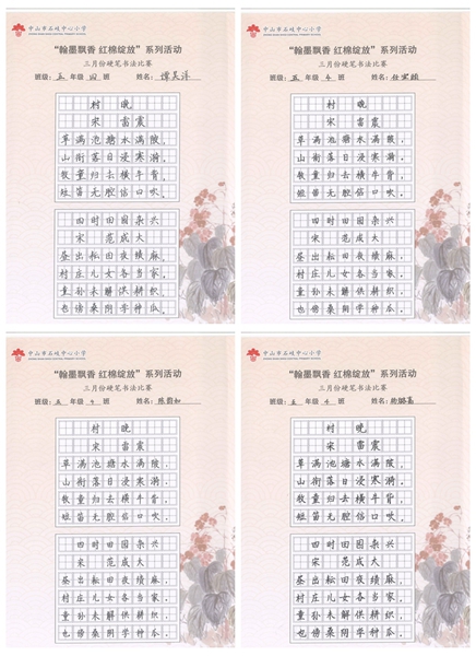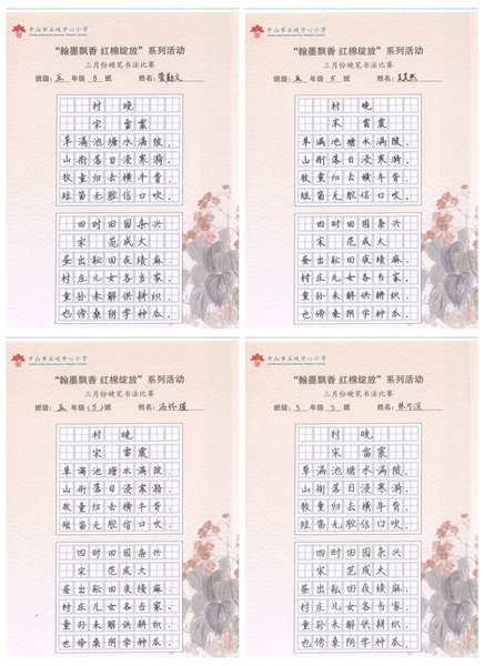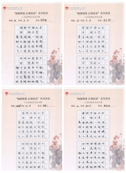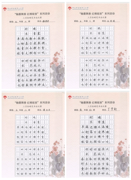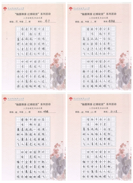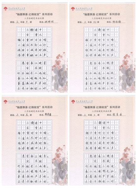 撰稿:公春江 審稿:王文儒 二審:黃建喜 三審:周錦連 發(fā)布:區(qū)泳秋 ——中山市石岐中心小學(xué)全校硬筆書(shū)法雙月展獲獎(jiǎng)作品系列