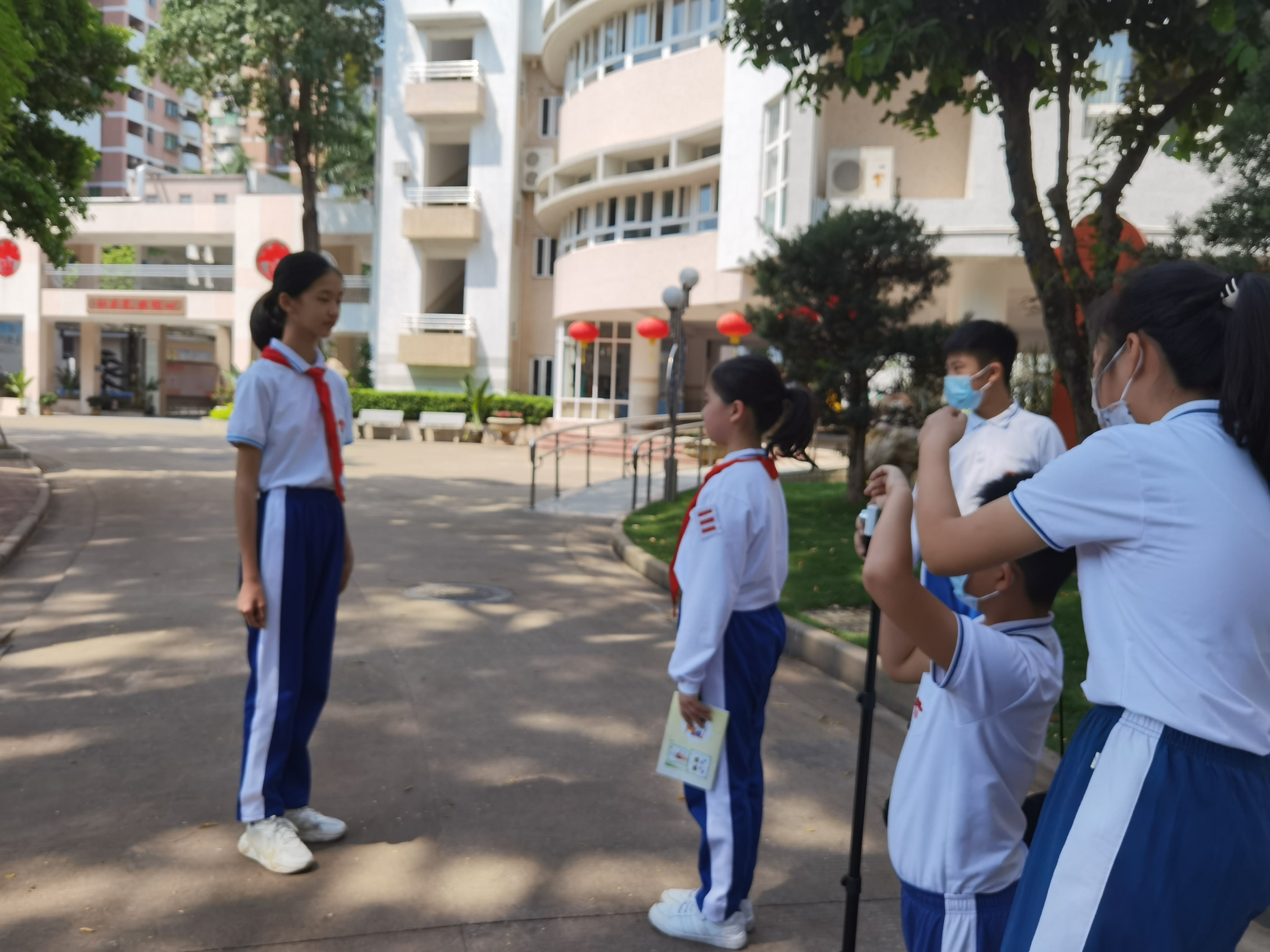 由于疫情防控要求,原計劃的培訓無法進行,學校少工委動員紅棉影視社團隊員楊瀚哲、梁曦文,學校總隊委王映歡、陳芊聿,六(1)中隊的孫浩誠等同學一起拍攝“紅領(lǐng)巾獎章”爭章講解視頻,幫助各中隊更好地推進爭章活動。