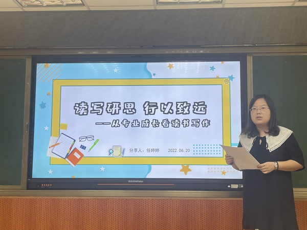隨后,王瑜老師進(jìn)行了《以寫促教》為主題的寫作分享。她從自己了解寫作到熱衷寫作的心路歷程出發(fā),分享了對(duì)教學(xué)與生活的感悟和思考,大家感受到了她對(duì)教學(xué)和自身發(fā)展的要求。