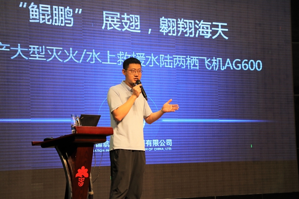 周沫宇老師給同學(xué)們分享了國產(chǎn)大型滅火、水上救援水陸兩棲飛機(jī)“鯤龍”AG600。周老師給同學(xué)們詳細(xì)介紹了AG600的生產(chǎn)制造過程,分享了全狀態(tài)新構(gòu)型滅火機(jī)——AG600飛機(jī)1003架。周老師還給同學(xué)們分享了AG600的應(yīng)用場景——森林滅火、海上救援等功能。AG600是滿足國家應(yīng)急救援體系和自然災(zāi)害防治體系建設(shè)需要的重大航空裝備。通過講座學(xué)習(xí),同學(xué)們真切感受到了“鯤鵬”展翅,翱翔海天的“鯤龍”AG600的巨大魅力。