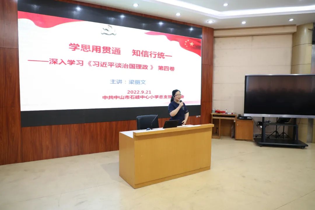 為進一步深化學習習近平新時代中國特色社會主義思想,增強學習宣傳貫徹的思想自覺、政治自覺、行動自覺,不斷從理論中汲取真理偉力、思想偉力、實踐偉力,9月21日,中山市石岐中心小學以“學思用貫通 知信行統一”為主題,開展全校思想政治學習活動和9月主題黨日活動,深入學習《習近平談治國理政》第四卷。