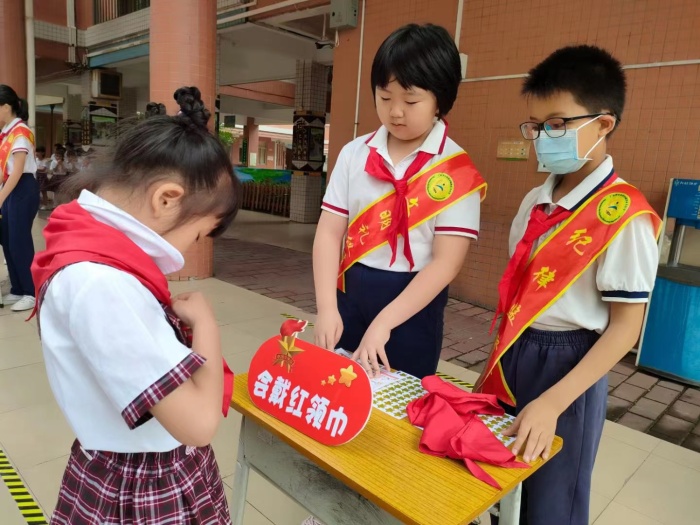 為深入貫徹落實(shí)團(tuán)中央、教育部、全國(guó)少工委《關(guān)于構(gòu)建階梯式成長(zhǎng)激勵(lì)體系增強(qiáng)少先隊(duì)員光榮感的指導(dǎo)意見》精神,在充分發(fā)揮入隊(duì)激勵(lì)作用的同時(shí),切實(shí)增強(qiáng)少先隊(duì)員的光榮感和組織歸屬感。5月26日早上,小欖鎮(zhèn)東方小學(xué)少先隊(duì)大隊(duì)部開展了一年級(jí)分批入隊(duì)爭(zhēng)章我能行活動(dòng)。