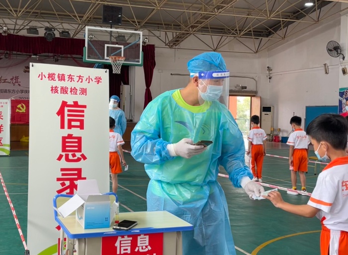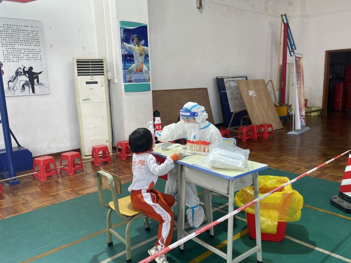 疫情防控工作是重中之重,小欖鎮(zhèn)東方小學(xué)高度重視這項工作,每天按照疫情防控要求,嚴(yán)格落實全體師生員工戴口罩進(jìn)出校門、進(jìn)校測溫、晨午檢等防控措施,更將常態(tài)化核酸納入日常的工作內(nèi)容,每周定期按比例抽測各班學(xué)生以及教師的核酸?!拔逡弧奔倨谑欠揽氐年P(guān)鍵時段,為筑牢學(xué)校安全防疫線,切實保障師生生命安全和健康,在嚴(yán)格核實所有師生家長的綠色健康碼、行程卡等返校資料后,5月6日上午,小欖鎮(zhèn)東方小學(xué)組織全體師生員工在體育館二樓開展第四次全員核酸檢測工作。