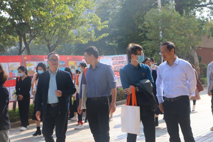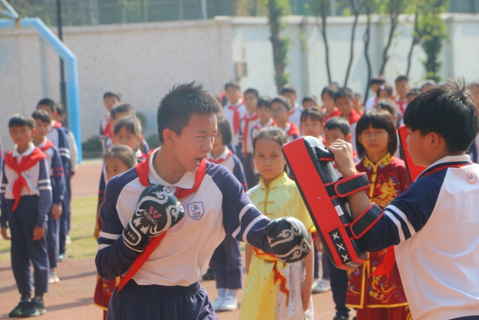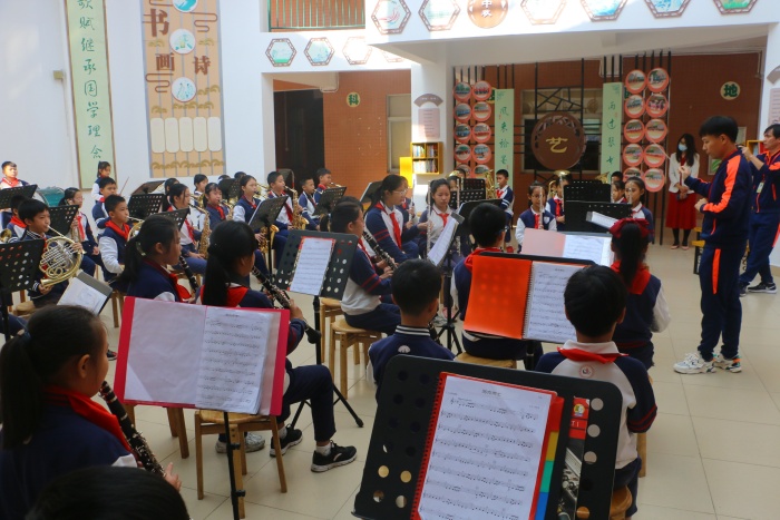 上午,在李正可校長帶領(lǐng)下,督導(dǎo)組首先邁上“陽光大道”,一邊凝神欣賞學(xué)生為慶祝建黨100周年共同繪就的“百圖頌中華”的作品,一邊認(rèn)真聆聽德育處主任柯小敏解說學(xué)校文化。隨后,督導(dǎo)組來到向上廣場,觀看線描畫社團(tuán)和水彩社團(tuán)的書畫展,兩個(gè)社團(tuán)的學(xué)生都用簡單的繪畫工具,完成了一幅幅意境優(yōu)美的作品,給督導(dǎo)組帶來了樂趣和美的享受。督導(dǎo)組走進(jìn)中庭,欣賞了民樂社團(tuán)的《花兒與少年》,歡快的樂曲給人們帶來心靈的寧靜,接著是高年級學(xué)生的口風(fēng)琴表演,那宏大而整齊的口風(fēng)琴演奏充分展示了學(xué)校推動(dòng)“器樂進(jìn)課堂”的成效。然后大家來到水墨室,驚嘆于原本普通的墨色,在學(xué)生們濃淡相宜的筆觸下,別有一番韻味,感嘆于現(xiàn)代學(xué)生們對中國傳統(tǒng)文化的熱愛。國學(xué)園內(nèi),隨著李晟赫老師指揮棒的揮舞,激昂的交響樂瞬間響起,十余種樂器共同演繹出動(dòng)人的旋律,樂曲各聲部層次突出,充滿和諧之美。在觀賞完低年級學(xué)生充滿童心童趣的繪畫后,督導(dǎo)組在庭院觀賞合唱社團(tuán)的表演,學(xué)生們清脆的歌聲和優(yōu)美的舞姿,讓人們的心情也不禁跟著歡快起來。圍棋社團(tuán)的學(xué)生正在屏氣凝神,棋盤之上的黑白雙色是他們不見硝煙的戰(zhàn)場。與此同時(shí),搏擊社團(tuán)和武術(shù)社團(tuán)的學(xué)生已經(jīng)蓄勢待發(fā),他們的一招一式,翻轉(zhuǎn)騰躍的靈活身影充滿了力與美,中年級的武術(shù)操緊跟其后,一個(gè)個(gè)扎實(shí)的動(dòng)作,一聲聲有力的吶喊,都代表了東方“六朗學(xué)子”的無限活力!最后,督導(dǎo)組來到棒球場,觀看東方小學(xué)傳統(tǒng)體育項(xiàng)目棒球的日常訓(xùn)練,棒球場上傳接球練習(xí)、跑壘練習(xí)和揮棒練習(xí),一切都是井井有條,督導(dǎo)組無不為球員們精彩的表現(xiàn)贊不絕口,拍手叫絕。