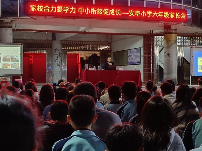 為了促進學校與家庭、教師與家長的交流溝通,進一步形成教育合力,共同做好小升初的教育教學工作,2023年3月3日晚上,坦洲鎮(zhèn)安阜小學召開以“家校合力提學力,中小銜接促成長”為主題的六年級學生家長會,市一中教育集團坦洲中學朱壽清副校長、坦洲實驗中學楊建萍副校長作為嘉賓,出席了本次家長會并做主旨發(fā)言。