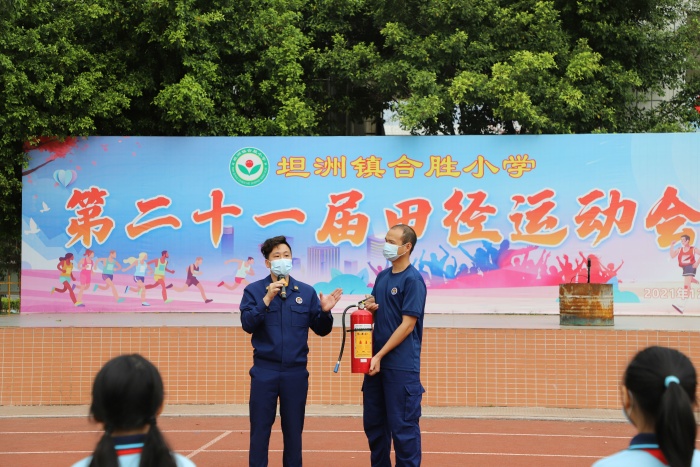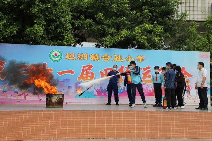 接著,坦洲消防中隊黃教官對全體師生進行了消防安全知識培訓(xùn)和現(xiàn)場滅火實操演練。他首先介紹發(fā)生火災(zāi)逃生時應(yīng)注意的事項、滅火時注意的幾種情況以及干粉滅火器的用途。然后安排了部分教師和學(xué)生到現(xiàn)場進行滅火實操演練,讓師生正確掌握了如何使用滅火器進行滅火的方法。