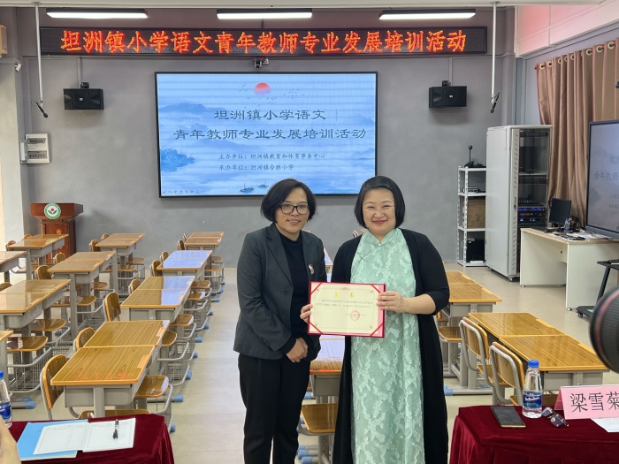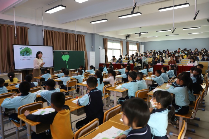 為培養(yǎng)青年教師,坦洲鎮(zhèn)教育和體育事務(wù)中心特聘請(qǐng)梁雪菊老師為指導(dǎo)顧問,并頒發(fā)證書?;顒?dòng)中,同德小學(xué)李媚老師進(jìn)行一年級(jí)下冊(cè)《荷葉圓圓》課例展示。李老師親切的話語,有趣的課前熱身游戲很快吸引了孩子們,課堂上書聲瑯瑯,氣氛活躍,同學(xué)們童稚的發(fā)言,引來老師們陣陣笑聲。