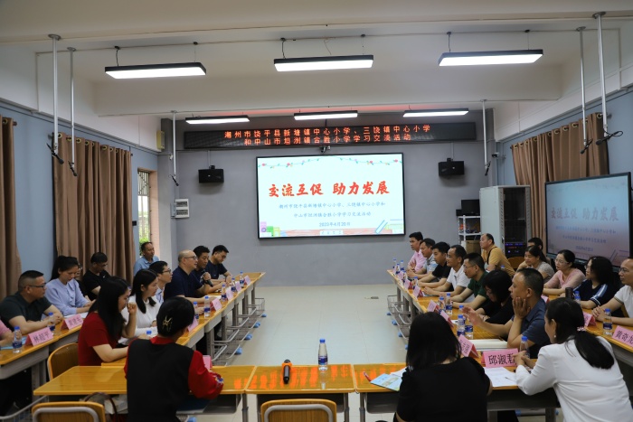 為貫徹落實(shí)省教育廳關(guān)于“全口徑全方位融入式幫扶工作”文件精神,落實(shí)《中山市教體系統(tǒng)2022年對(duì)口支援幫扶工作實(shí)施方案》要求,中山市坦洲鎮(zhèn)合勝小學(xué)與潮州市饒平縣新塘鎮(zhèn)中心小學(xué)簽訂了幫扶協(xié)議,成為“結(jié)對(duì)子”學(xué)校。4月20日下午,饒平縣新塘鎮(zhèn)中心小學(xué)、三饒鎮(zhèn)中心小學(xué)22位行政、教師到坦洲鎮(zhèn)合勝小學(xué)學(xué)習(xí)交流。坦洲鎮(zhèn)教育和體育事務(wù)中心鄭訓(xùn)彬主任、阮班俊副主任、何平原老師參加活動(dòng)。坦洲鎮(zhèn)合勝小學(xué)張志略校長(zhǎng)率領(lǐng)行政班子成員熱情接待了交流團(tuán)隊(duì)。