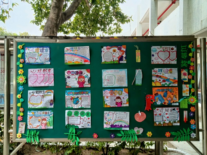 同學(xué)們廣泛收集有關(guān)心理健康方面的知識(shí)素材,一幅幅作品展現(xiàn)了孩子積極向上的精神面貌,細(xì)膩的文字傳遞出心理健康的理念。低年級(jí)小朋友稚嫩的筆法結(jié)合溫暖的色彩,制作出精美的書(shū)簽;高年級(jí)的同學(xué)精心設(shè)計(jì)手抄報(bào)版面,巧妙的構(gòu)思配合扎實(shí)的繪畫(huà)功底,繪制出一幅幅版面精美、色彩豐富、布局新穎,讓人眼前一亮、心靈溫暖的手抄報(bào)作品。