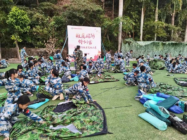 教室里,我們激揚(yáng)文字、指點(diǎn)江山,沙場(chǎng)上同樣可以拿起武器保家衛(wèi)國(guó)。古有花木蘭,今有我少年,試看誰(shuí)敢犯我中華!通過(guò)教官的講解,同學(xué)們學(xué)會(huì)了怎樣握槍、射擊,進(jìn)行了刺激的野戰(zhàn)對(duì)抗。在教官的帶領(lǐng)下,同學(xué)們學(xué)習(xí)制作過(guò)濾水裝置,搭建帳篷,營(yíng)地建設(shè)和野外防蚊防蟲(chóng)、消防安全、應(yīng)急避險(xiǎn)技能;學(xué)習(xí)急救常識(shí)、學(xué)會(huì)簡(jiǎn)易包扎、心肺復(fù)蘇救助……,訓(xùn)練之余,更有充滿歡聲笑語(yǔ)的篝火晚會(huì)。