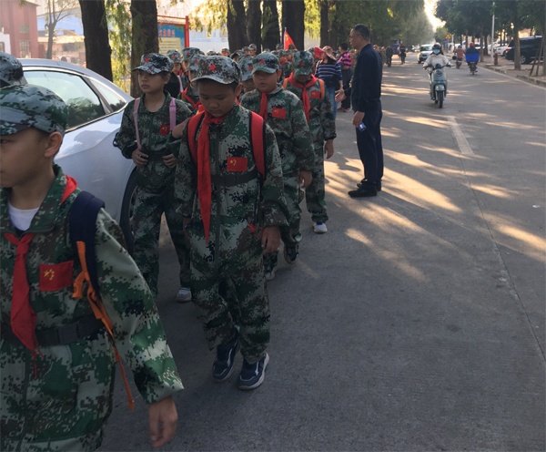 伴隨著清晨燦爛的霞光,如朝陽(yáng)般蓬勃的孩子們?cè)趨切iL(zhǎng)、蘇煥副校長(zhǎng)以及教練、各班帶隊(duì)老師的帶領(lǐng)下,興致昂揚(yáng)地從林東小學(xué)出發(fā),“學(xué)黨史、聽(tīng)黨話、感黨恩、跟黨走!” “……團(tuán)結(jié)就是力量,團(tuán)結(jié)就是力量, 這力量是鐵,這力量是鋼……”,“……將士們聽(tīng)黨指揮, 能打勝仗作風(fēng)優(yōu)良……” 隊(duì)旗飄飄,口號(hào)整齊,軍歌嘹亮,引得市民爭(zhēng)相駐足圍觀、拍照。240余人,10公里,3小時(shí)20分……“更喜岷山千里雪,三軍過(guò)后盡開(kāi)顏”,同學(xué)們終于苦盡甘來(lái),順利到達(dá)目的地。