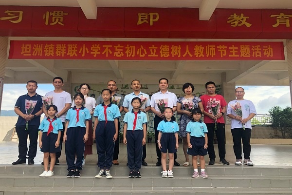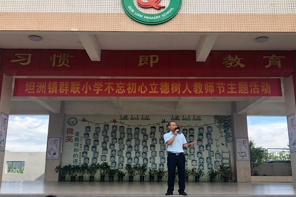 以黨的十九大精神和社會主義核心價值觀重要思想為指導(dǎo),通過開展慶祝教師節(jié)主題活動,營造尊師重教的良好氛圍,進(jìn)一步激發(fā)全校教職工“不忘初心,立德樹人”的精神,坦洲鎮(zhèn)群聯(lián)小學(xué)開展了“不忘初心,立德樹人”教師節(jié)主題活動。