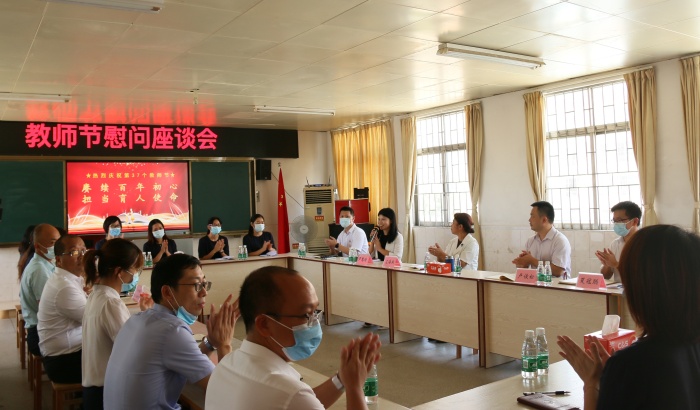 第37個教師節(jié),如約而至。十年樹木、百年樹人,教師的使命偉大而光榮。2021年9月10日,中山市委組織部常務(wù)副部長、一級調(diào)研員左海燕、中山市委組織部組織三科科長盧俊松、坦洲鎮(zhèn)黨委副書記羅慧玲、鎮(zhèn)黨委委員夏冠聰以及鎮(zhèn)黨建辦、宣傳辦、教育和體育事務(wù)中心等領(lǐng)導(dǎo)走進學(xué)校,慰問教師。向辛勤耕耘在教育一線的老師們送去了節(jié)日的祝福與真切的關(guān)懷。參加本次慰問座談會的還有坦洲鎮(zhèn)第三初級中學(xué)、十四村小學(xué)校級領(lǐng)導(dǎo)和部分教師代表。