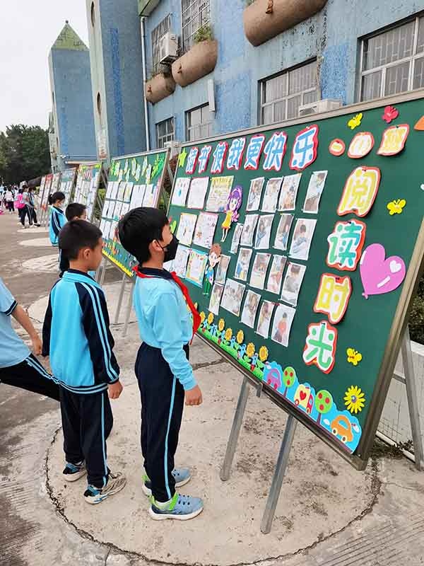 本次活動(dòng),每個(gè)班級(jí)均結(jié)合已經(jīng)開展的21天閱讀挑戰(zhàn)活動(dòng),倡議學(xué)生走進(jìn)圖書館,開展班級(jí)讀書漂流活動(dòng)、開展親子共讀活動(dòng)、師生齊讀一本書活動(dòng),鼓勵(lì)學(xué)生多向周圍的同學(xué)和老師推薦好書,每班都評(píng)選出班級(jí)“讀書小明星”。語文老師和同學(xué)們精心設(shè)計(jì)班級(jí)展板,展現(xiàn)班級(jí)的讀書氛圍與成果,讓整個(gè)校園書香四溢。