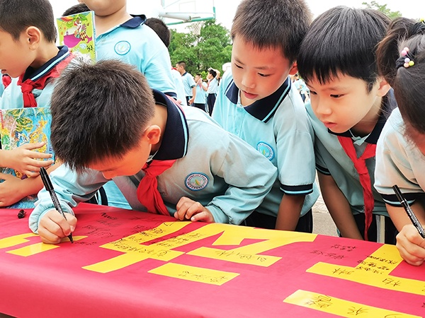 接著,愿意接受本次“21天健康閱讀行動”挑戰(zhàn)的學(xué)生上臺簽名,在鮮紅的挑戰(zhàn)書上寫下自己的名字,正式開啟閱讀挑戰(zhàn)。最后,同學(xué)們積極踴躍地拿出自己珍藏的書籍,參加學(xué)校的漂書活動,彼此分享閱讀的快樂。知識因傳播而美麗!圖書漂流是一種贈予,一種分享。圖書漂流,漂流的不僅是知識和智慧,更是漂流了文明和美麗,一種愛讀書、珍惜書的好習(xí)慣已在永一小學(xué)悄悄形成。