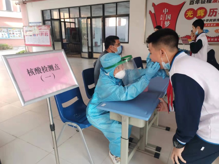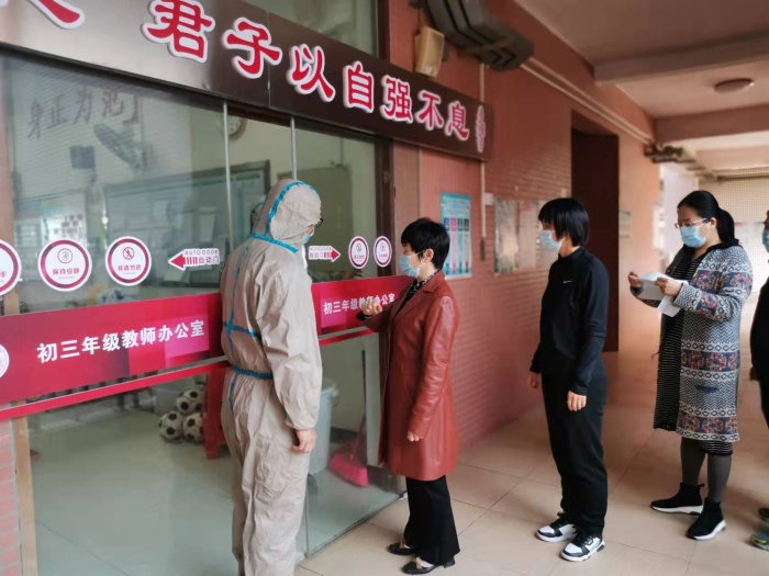 演練假定坦洲衛(wèi)生健康部門工作人員致電吳校長,告知初一(1)班學(xué)生小趙是新冠肺炎病例的密切接觸者,被轉(zhuǎn)運后該生核酸檢測結(jié)果呈陽性,經(jīng)摸查,學(xué)生小趙的密切接觸者共有280人。