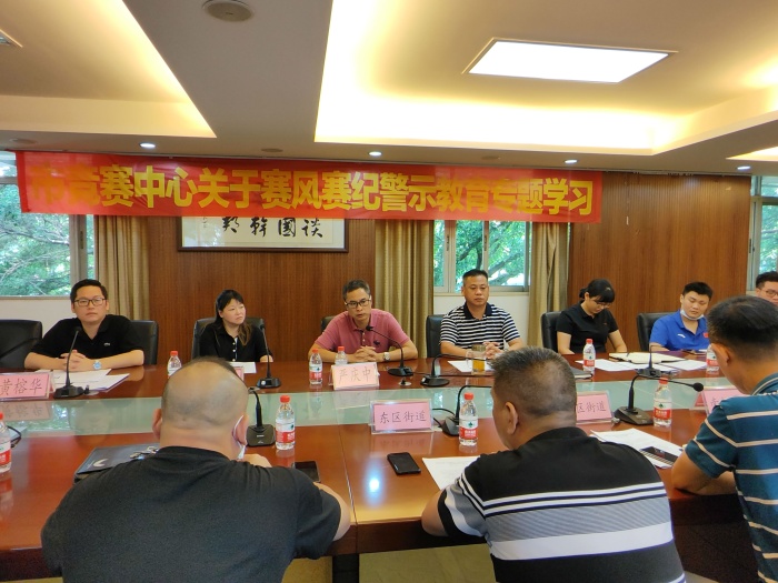 為響應(yīng)國(guó)家、省、市關(guān)于嚴(yán)抓賽風(fēng)賽紀(jì)警示教育學(xué)習(xí)的工作要求,9月15日,市競(jìng)賽中心召開關(guān)于賽風(fēng)賽紀(jì)警示教育專題學(xué)習(xí)交流會(huì),會(huì)議邀請(qǐng)了市教育和體育局競(jìng)技體育科嚴(yán)慶中科長(zhǎng)和梁綺玲女士,以及部分鎮(zhèn)街體育專干、部分體育行業(yè)協(xié)會(huì)主管競(jìng)賽和裁判員工作的負(fù)責(zé)人參加,市競(jìng)賽中心全體工作人員出席會(huì)議。