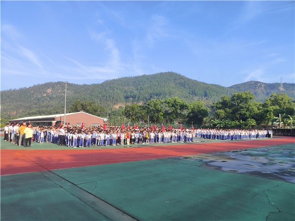 10月11日升旗儀式開展了“請黨放心 強國有我---喜迎少先隊中山市第八次代表大會”少先隊徽儀式。秋風瑟縮,盡管運動場上有前一天大雨留下的許多腳印,但抵擋不了隊員們參加少先隊徽儀式的熱情。鮮艷的中隊旗在迎風飄揚,隨風舞動的紅領(lǐng)巾如隊員們激動的心一樣不停地顫動。隊徽儀式在莊嚴的國歌聲中拉開了序幕,全體少先隊員面向黨旗、團旗、隊旗做到“四個一”:敬一個隊禮、唱一次隊歌、重溫一次誓詞、莊嚴呼號一次。