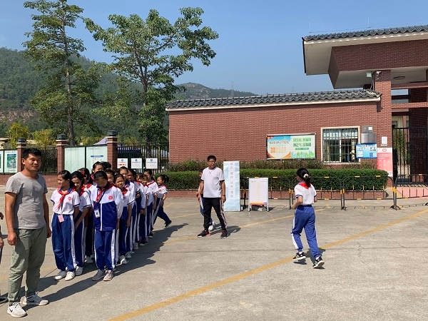 校車演練的目的是為了校車在路上突然發(fā)生安全事故時,教師們能很好的處理突發(fā)事件,把學(xué)生生命安全放在首位。演練開始前,余校長安排所有教師和學(xué)生在操場進(jìn)行觀摩。演練開始,余校長帶領(lǐng)兩位跟車教師和20位學(xué)生進(jìn)行演練 模擬校車突然在路上發(fā)生安全事故時的緊急逃生,跟車?yán)蠋煷_保后方無行駛來車安全的情況下,迅速下車在車尾后方50米以外放置三腳警示牌以提醒后方來車前面有車輛發(fā)生事故。跟車?yán)蠋熝杆俅蜷_安全門,并且馬上從安全門跳下車輔助學(xué)生迅速地從安全門有序撤離,并撤離到指定的安全區(qū)域并有序集合,跟車教師認(rèn)真地清點(diǎn)學(xué)生人數(shù),檢查學(xué)生情況,確保沒有一位學(xué)生遺漏,同時向相關(guān)部門匯報情況。3位教師再次進(jìn)行演練步驟復(fù)習(xí),確保教師是否熟悉緊急逃生流程,演練順利結(jié)束。