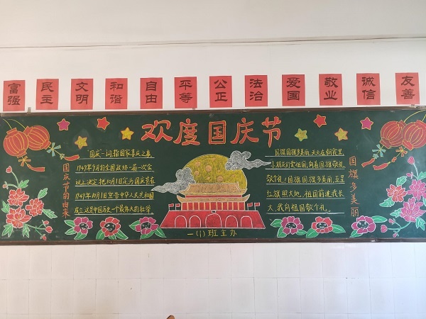 大隊(duì)部還組織了一次“向國(guó)旗敬禮”為主題的黑板報(bào)評(píng)比活動(dòng)。為了出好本次黑板報(bào),各班同學(xué)們團(tuán)結(jié)協(xié)作,懷著對(duì)祖國(guó)的熱愛(ài),同學(xué)們充分發(fā)揮自己的聰明才智,設(shè)計(jì)出一幅幅畫(huà)面精美、布局合理、字體端正、內(nèi)容詳實(shí)、主題突出的黑板報(bào)。在這次活動(dòng)中,增強(qiáng)了同學(xué)們的愛(ài)國(guó)主義情懷。