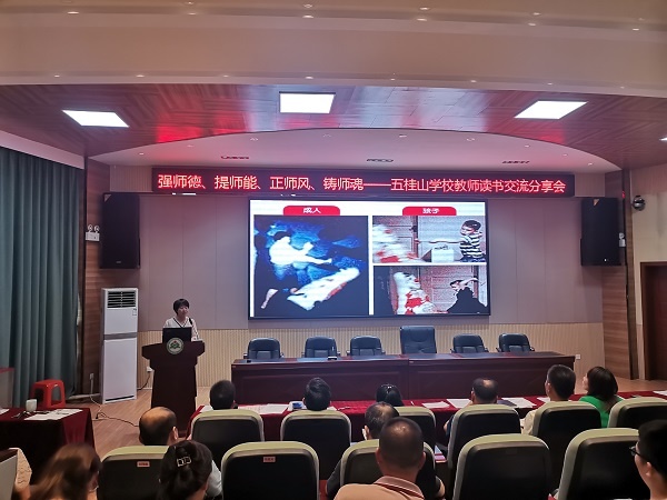 為積極響應(yīng)習(xí)近平總書記致首屆全民閱讀大會的賀信的倡議,提高學(xué)校廣大師生的閱讀興趣,打造書香校園,6月17日下午,五桂山學(xué)校在綜合報告廳開展了主題為“強師德、提師能、正師風(fēng)、鑄師魂”的教師讀書分享交流與師德教育暨廉潔教育會。一至九年級各九位老師分享讀書心得,李萌校長就師德廉潔教育作主題講話,全體教師參加此次會議。