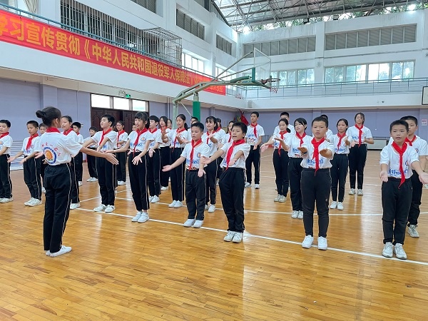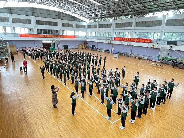 為促進(jìn)良好班級(jí)風(fēng)貌,形成健康向上、積極進(jìn)取的學(xué)習(xí)風(fēng)氣,彰顯校園文化特色,11月19日,五桂山學(xué)校利用大課間的時(shí)間,在體育館舉辦六年級(jí)《聽我說(shuō) 謝謝你》手語(yǔ)操比賽。六年級(jí)5個(gè)班級(jí)全體學(xué)生參加此次活動(dòng),德育處黃學(xué)富主任、各年級(jí)組長(zhǎng),大隊(duì)輔導(dǎo)員魏其標(biāo)老師擔(dān)任此次比賽的評(píng)委。