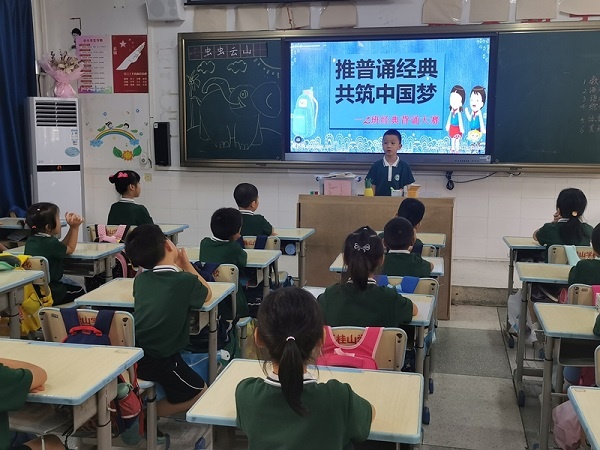 9月13日至19日是第24屆全國推普周。本屆推普周的主題是“普通話誦百年偉業(yè),規(guī)范字寫時代新篇”。為大力弘揚(yáng)中華優(yōu)秀傳統(tǒng)文化,進(jìn)一步增強(qiáng)師生的語言文字規(guī)范意識,五桂山學(xué)校開展了“推廣普通話學(xué)習(xí)”系列活動。